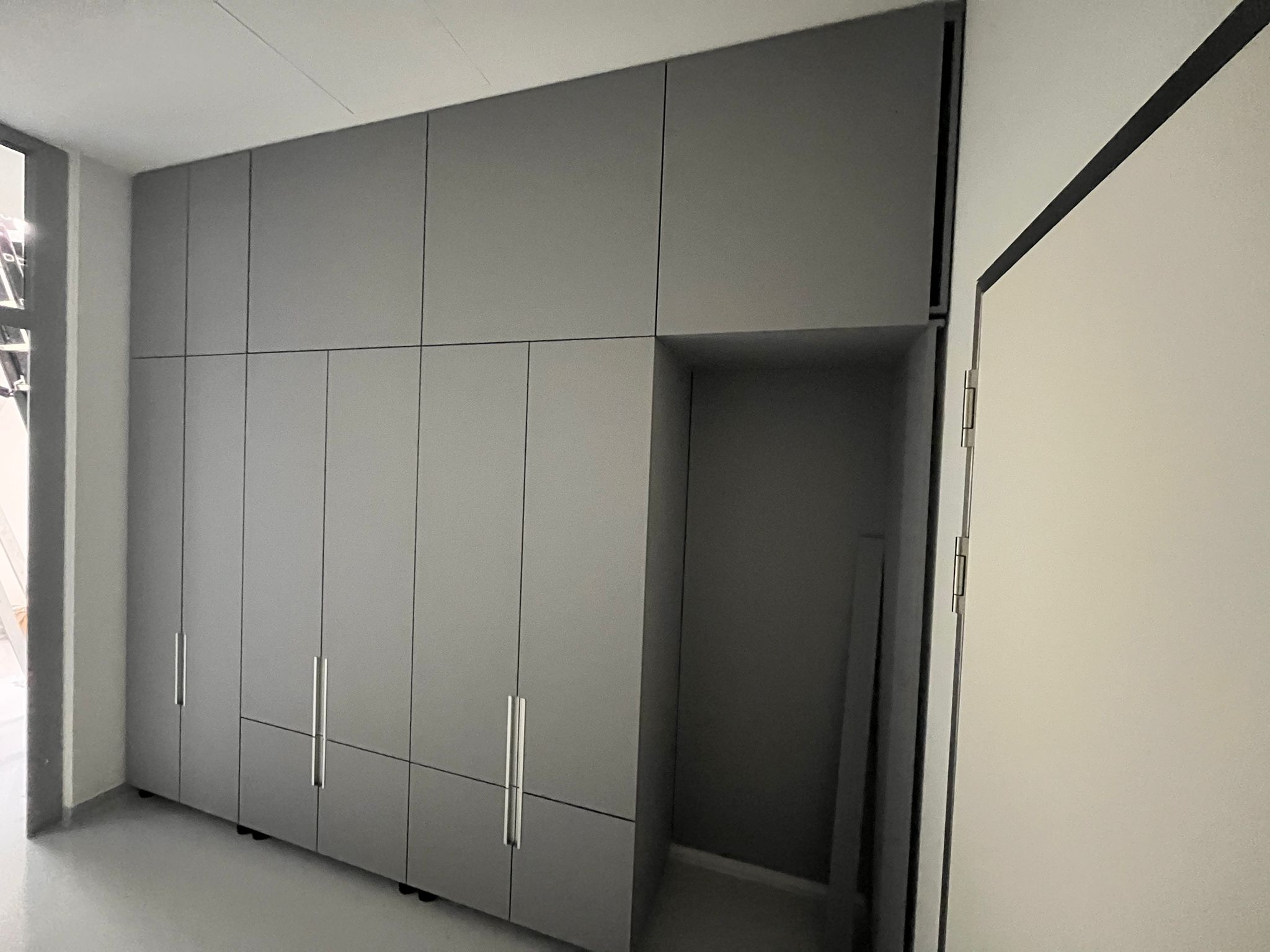 Schlichtes Design trifft auf durchdachte Funktion – dieser maßgefertigte Einbauschrank nutzt jeden Zentimeter effizient.